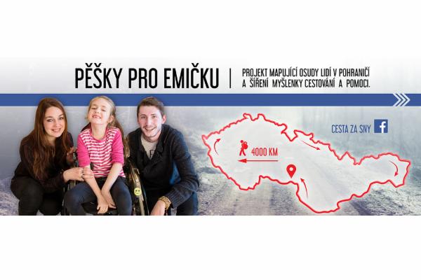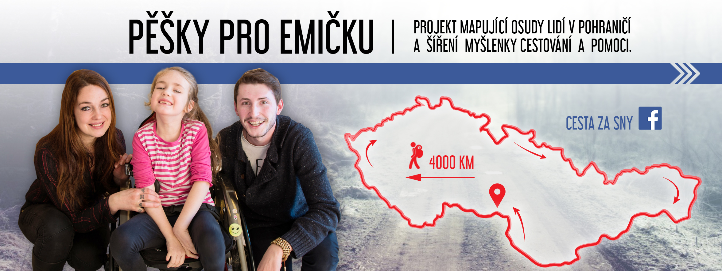 Chystám se obejít hranice celého Československa(cca 4000km), tak jak jsme byli před rozdělením našich států a pomocí propagace během této cesty vybrat finanční prostředky pro malou Emičku, která od narození trpí dětskou mozkovou obrnou a její léčba a rehabilitace jsou finančně nákladné. Cesta bude velmi dlouhá a jen málokdo by šel ve vlastním volnu tisíce kilometrů, aby někomu pomohl. Touto cestou chci také inspirovat další lidi, aby také pomáhali těm, kteří to nemají v životě jednoduché.