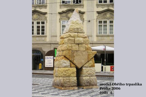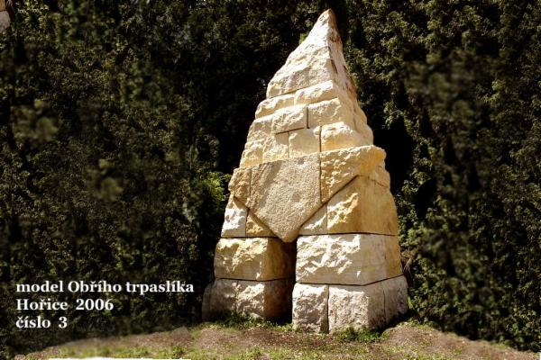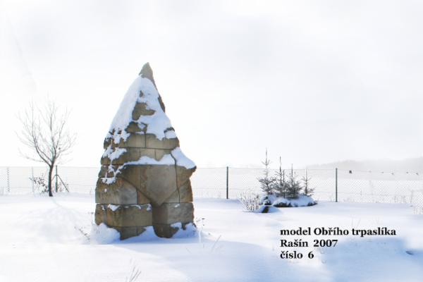 Po získání všech potřebných povolení bylo v roce 2006 naším dalším krokem zhotovení třetinového, téměř 4 m vysokého pískovcového modelu. Ten byl postupně vystavován v Hořicích (2006), v Praze (2006), v Rašíně (2007), v Jičíně (2013) a nyní je umístěn v sochařském parku v Hořicích. S nadhledem, odpovídajícím velikosti zamýšleného sochařského díla a současné době, zahájil letos Okrášlovací spolek Rašín stavbu vlastního Obřího trpaslíka pod heslem „Bezmeznou monumentalitou za věčnou slávu národa“. Celá socha bude poskládaná ze 49 pískovcových bloků, její výška překročí 10 metrů a váha bude přibližně 200 tun. Jako spolek máme v tuto chvíli zajištěné financování betonového základu budoucí sochy a rádi bychom využili hithitu ke spuštění kampaně pro získání prostředků na základní kámen sochy obřího trpaslíka a zajištění webových stránek projektu.
