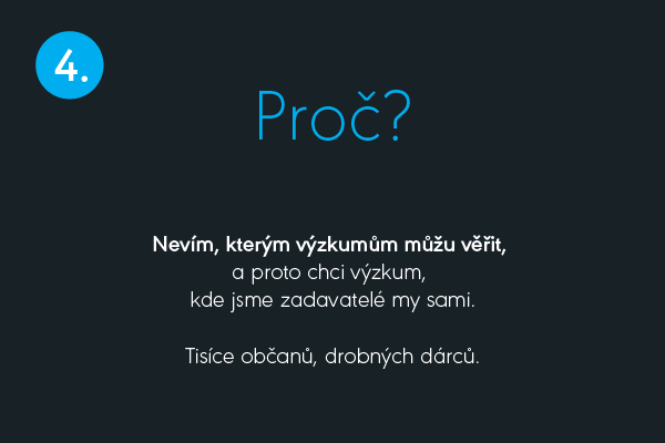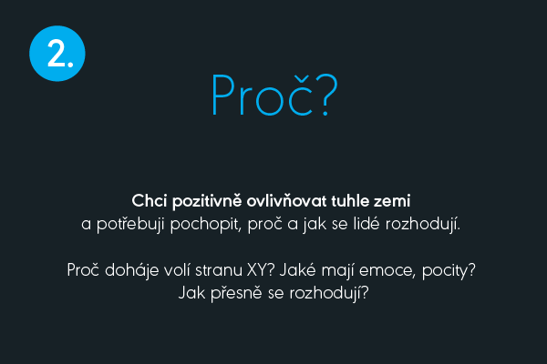 K dobrým informacím o volebním rozhodování lidí by neměli mít přístup jen volební stratégové nejbohatších stran. Jednou za čtyři roky tuhle zemi společně někam nasměrujeme, ovlivní to život každého z nás, a my chceme rozumět tomu, jak a proč se to stalo zrovna takhle.