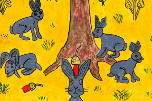 „To je geniální!“ zvolal jeden z králíků uprostřed davu a udeřil se packou do čela. Vzápětí padl mrtev k zemi. Jeho nebohá hlava to pomyšlení nedokázala snést.