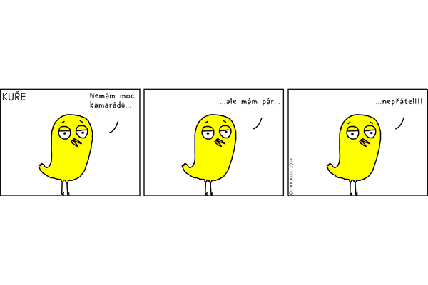 Strip KUŘE vychází již 10 let každé ráno v 7.00 na webu - www.kakalik.cz a na www.facebook.com/kakalikFacebook Kakalík no a za odměnu chce vyjít v barevné a pořádně tlusté knížce.