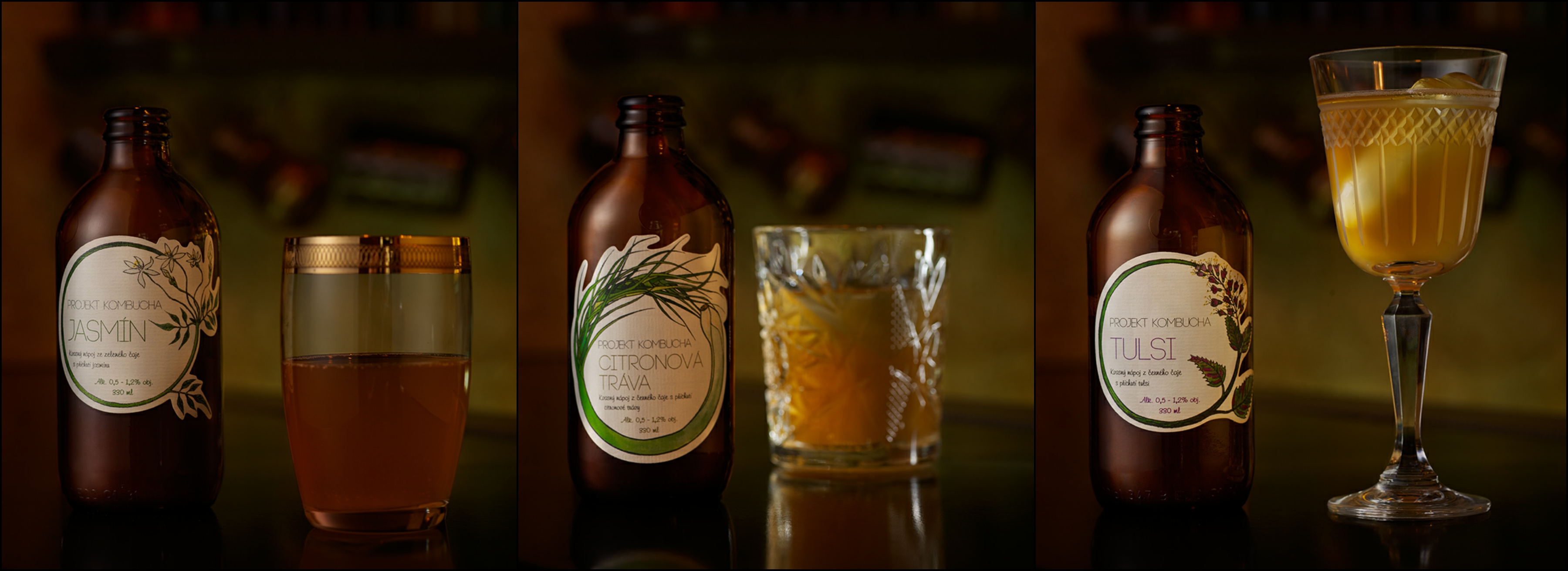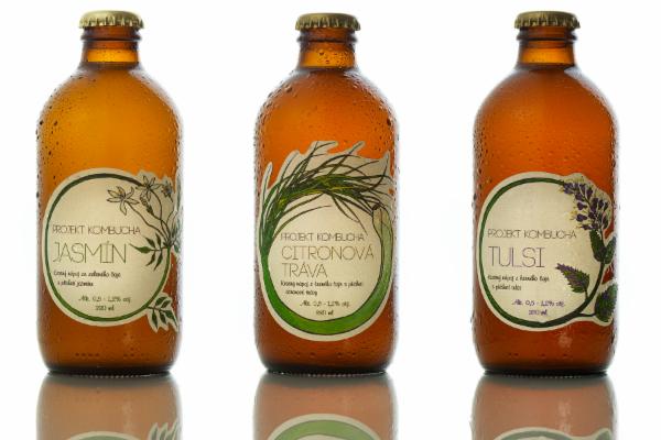 Finální podoba naší kombuchy je týmovou prací. Ondra vlastnoručně nakreslil design etiket. Jirka zase nalezl tu pravou lahev pro naši kombuchu při své cestě do Rigy. Nakupujeme je v Nizozemí, jsou z 80% z recyklovaného materiálu. Skleněné lahve jsou pro nás velmi důležité, protože zachovávají kombuchu v té nejlepší kondici až do otevření. A etikety z papíru místo poslední dobou tak moderní PVC fólie byly již přirozenou volbou.