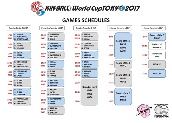 Světový pohár v Tokiu se nezadržitelně blíží. Zde můžete vidět první rozpis zápasů: muži jsou modří a ženy jsou šedé.
