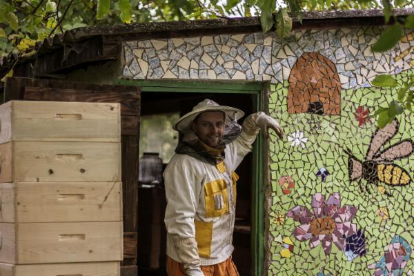 Před čtyřmi lety jsme se s manželkou Ivicou rozhodli odejít z Prahy do Velkých Losin, abychom mohli vychovávat naše děti blíže přírodě její krásou a každodenním kontaktem s živly. Koupili jsme dům se zahradou a tam to začalo. Ve starém včelíně bylo jedno včelstvo po předchozím majitelích. S velkým zaujetím jsem včely měsíc sledoval. Na česně úlu se děly různé věci, kterým jsem nerozuměl. Ve včelíně to nádherně vonělo medem a propolisem a pak to přišlo, před mýma očima se včely vyrojily. Byla to obrovská a nádherná síla, která mě se včelami spojila. Začal jsem včelařit. Od té doby jsem fascinovaný životem včel, jejich účinky na člověka a hlavně tím, co všechno se od včel a o včelách člověk může naučit. Rád do včelího světa vstupuji i s návštěvníky. Naplňuje mě, když vidím, že se z producenta medu s bolestivým žihadlem stává lidský souputník, pomocník, přítel a velký inspirátor.