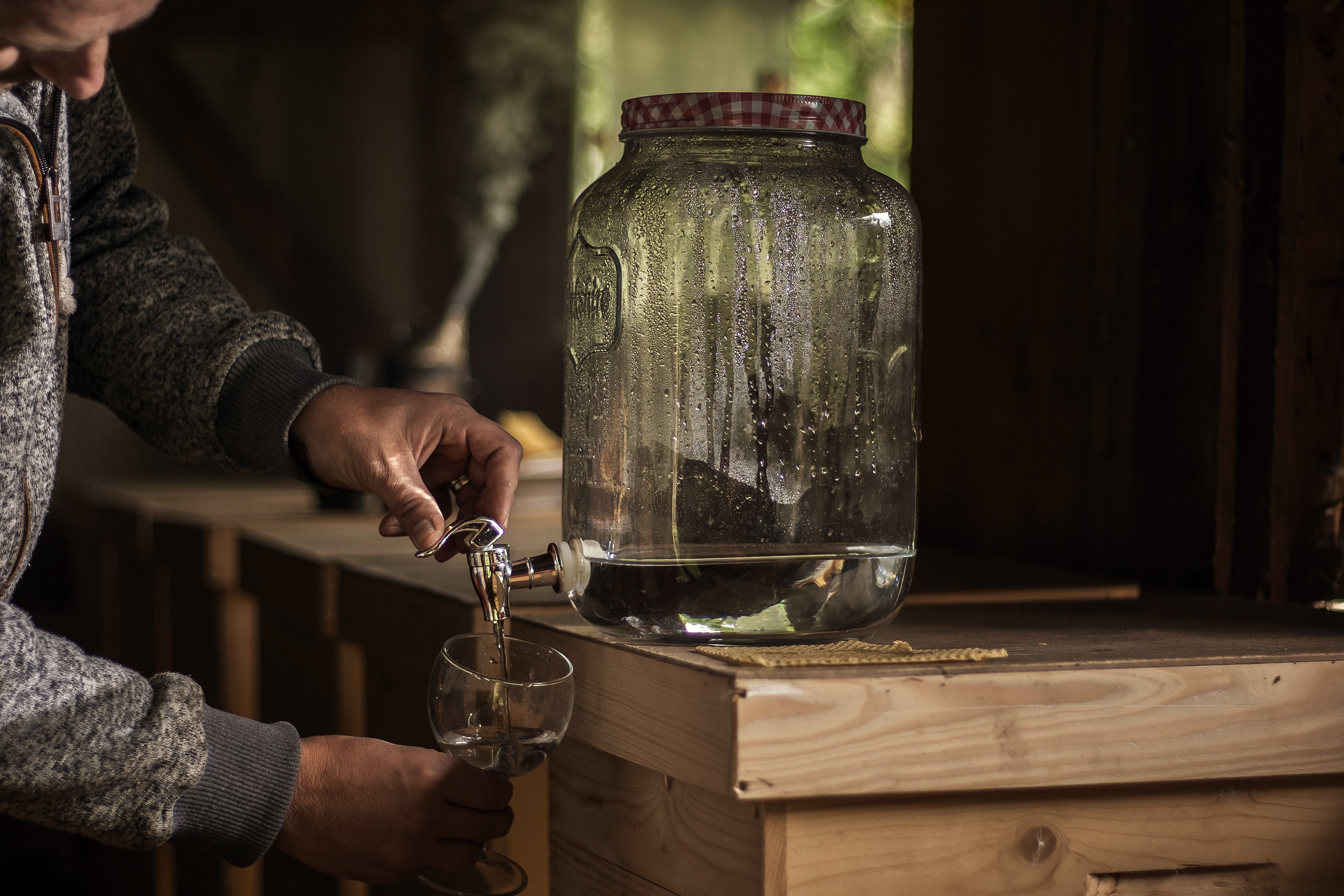 1) „Zážitkovou prezentárnu“ s 5-6 úly, do kterých je pěkně vidět a u kterých je možné příjemně posedět, povídat a kontemplovat. Úly jsou částečně proskleny pro celodenní bezpečné pozorování včel.