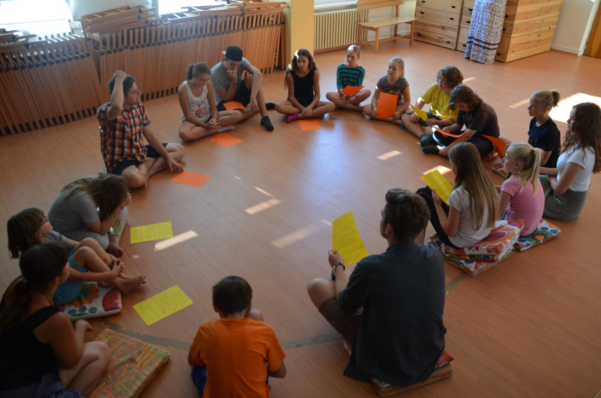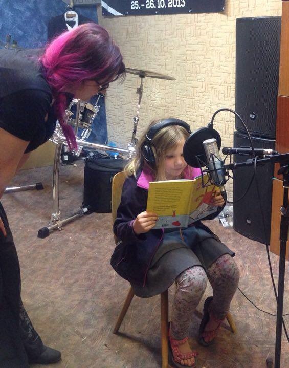 Dětský tým nám kromě samotného nahrávání pomáhá i jinak, děti například pomáhají na stánku nebo s kompletováním CD. Aby věděly, jak správně číst, uspořádali jsme pro ně workshop s Markem Mikuláškem, jediným profesionálním hercem v našem týmu.