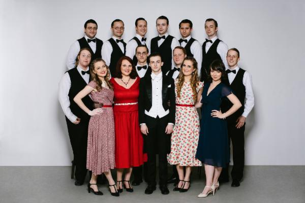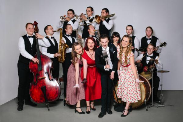 Jedenáct instrumentalistů, jeden zpěvák a sličné trio zpěvaček, tedy celkem 15 osob. Hrajeme český swing 30. a 40. let a milujeme nejen hudbu, ale i módu a celkově glanc a noblesu této doby. Možná jste nás už někde slyšeli naživo, koncerty máme totiž na různých místech republiky. Co nám ale ještě chybí je první deska! Bude se jmenovat Proč nemohu spát, stejně jako naše revue.