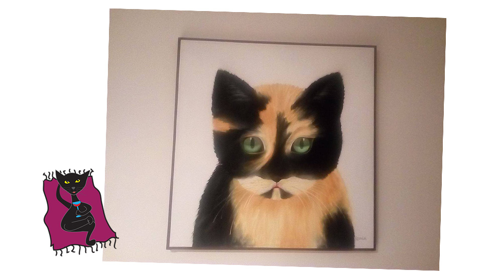 Obraz malíře Palouška, který věnovala Adéla K, adminka fb skupiny MŮJ ŽIVOT S KOČKOU.