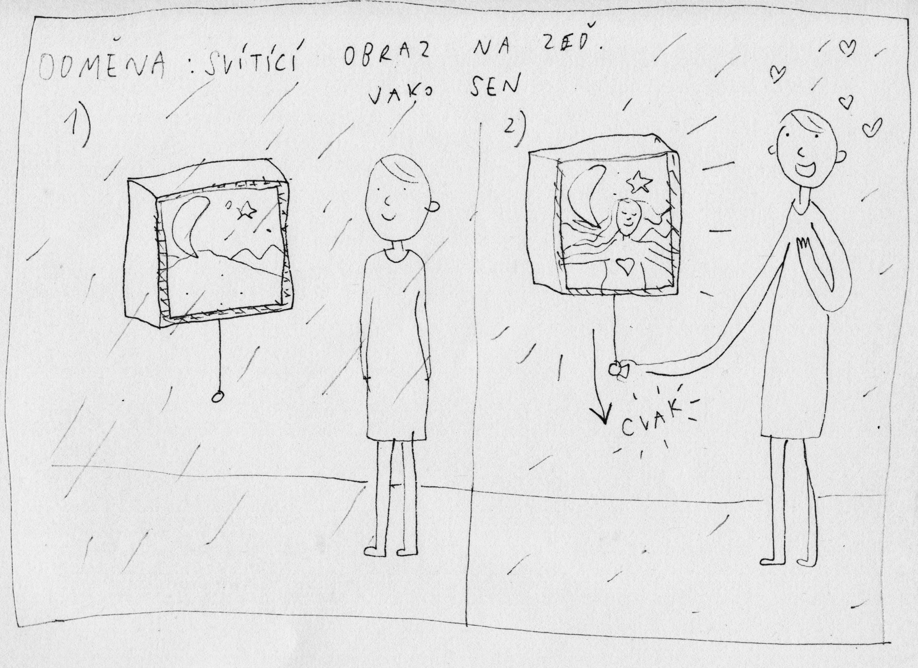 A když si na hithitu jako odměnu vyberete ilustraci, dostanete takovou sladkou svítící pusinku vlastně za hubičku, adjustovanou za sklem a v rámu se svítícím mechanismem – obrázek, který rozsvícením získá další rozměr. Jako upadnutí do snu. Každý obrázek je originální předloha k ilustraci a zároveň svébytný objekt. Zbývá posledních 7 dní! Díky za podporu!!