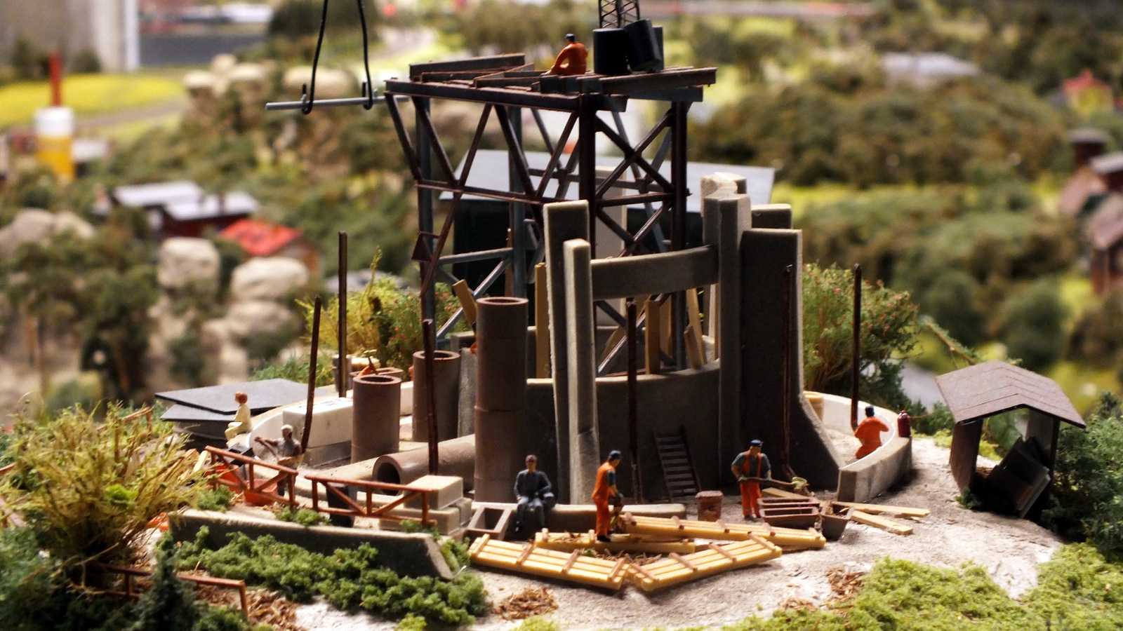 Model kraje tvoří kombinace krajinných prvků a zeleně, dopravní infrastruktura a budovy či stavby. Ty jsou buď nakoupeny ze SRN jako stavebnice (činžovní domy, pumpy atp), nebo zadány do výroby jako zakázkové modely – výše uvedený výčet dominant popisuje zakázkové modely, nejde tedy v žádném případě o všechny stavby v plánovaném modelu – doplněn objekty ze stavebnic bude model PK obsahovat 160 dalších budov a objektů.