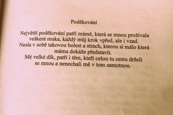 Malá knížka s velkými slovy. Prošla jsem si, dá se říct peklem, bojovala jsem s rozvodem rodičů, poté spadla do nemoci, z které nebylo možné utéct. Díky tomu jsem skončila se synchronizovaným plaváním a topila se na psychiatriích. Sáhla si několikrát na život a taktéž ztratila chuť žít. Bylo mi pouhých dvanáct let a kolikrát tomu sama nevěřím, že se to opravdu stalo. Snažila jsem se to zobrazit na pár řádcích, jaké to je projít si tím, o čem se mluví, ale potichu. Anorexie je zrůda, která ničí a zaslepuje vše okolo vás. Chtěla bych, aby ostatní věděli, že se to opravdu děje a přečetli si těch pár stránek o tom, že stojí za to žít a bojovat. Málo kdo věřil, že jsem to všechno překonala a zanechala to za sebou, ovšem opak je pravdou, stále si to nesu s sebou. Jednou bych ráda zakřičela do světa, jak je krásné se nadechnout a jak je krásné být zase s přáteli a věřím, že se mi to i díky Vám podaří.