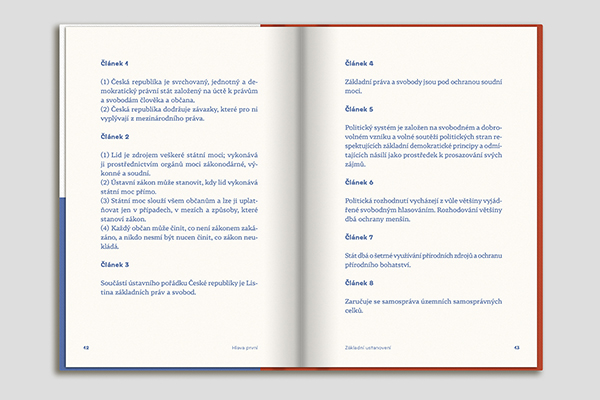 To vše je obsahem Ústavy České republiky. Dosud ji však vydávali nakladatelé, kteří nedbali o její atraktivní podobu, což jsme se rozhodli změnit.