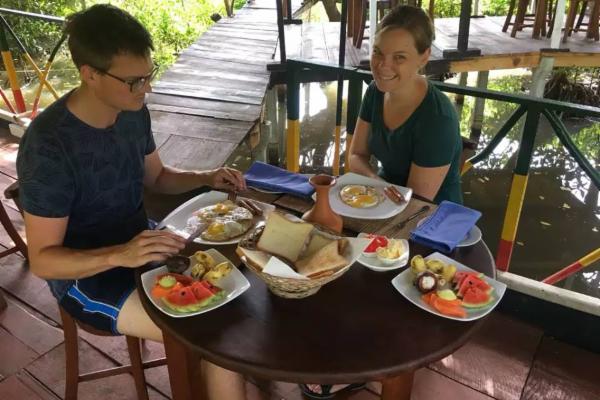 Součást resortu je „plovoucí restaurace“ na přilehlém jezeře, které pojme až 25 hostů a na které můj společník s manželkou připravují skvělé pokrmy z místní gastronomie.