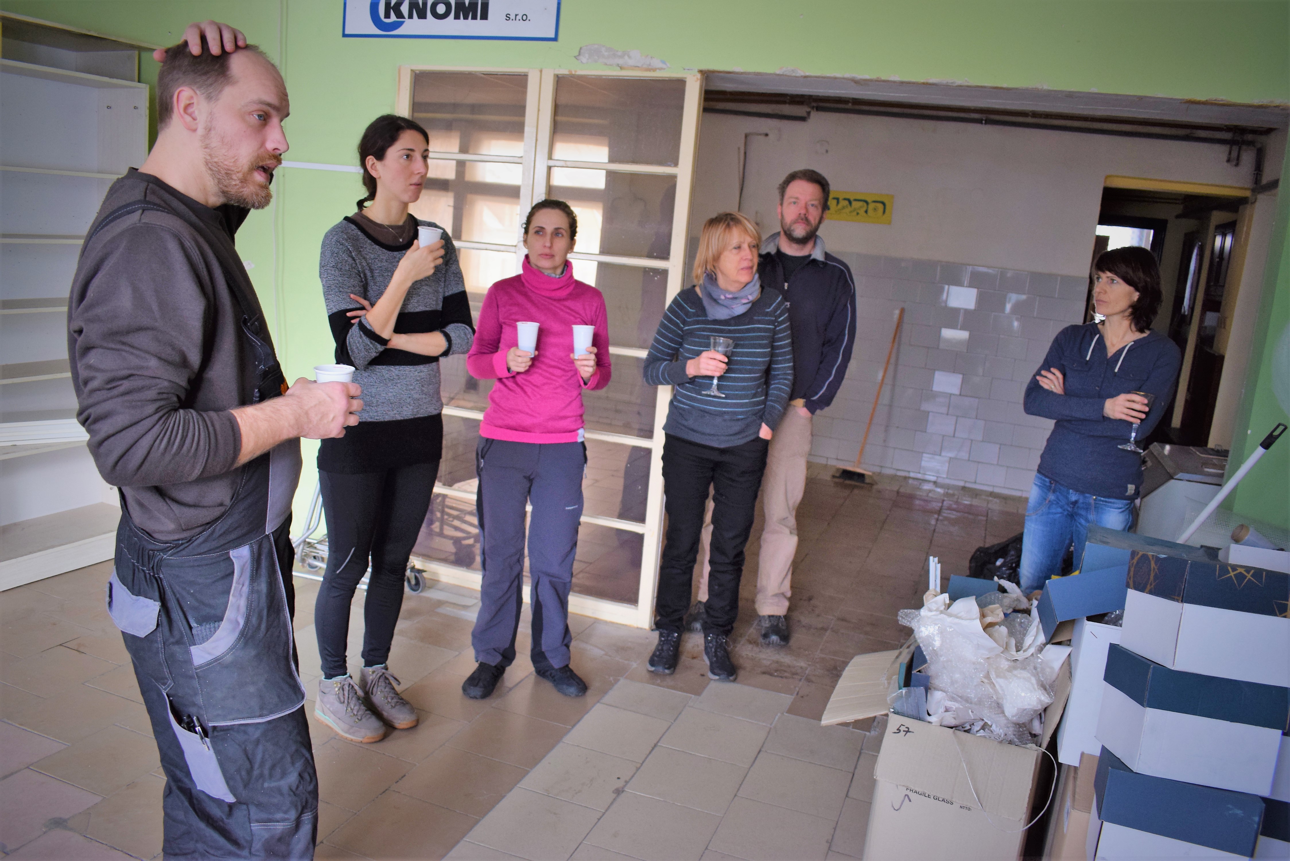 Atmosféra byla skvělá, a až to byla práce, tak si myslím, že to tak nikdo úplně nebral. Ke snídani chleba se škvarkovkou a okurkou, k obědu guláš. Po obědě vínko, aby si ateliér začal zvykat na zvučný smích nových obyvatel.