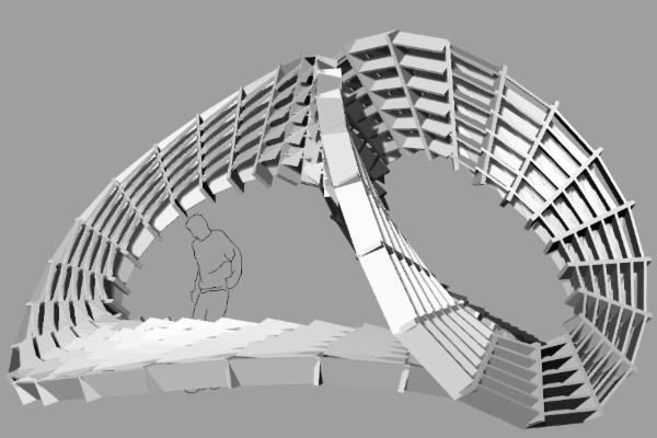 Konstrukce pavilonu Loop využívá masivního dřeva, jehož vlastnosti umožnily designerům z řad studentů tvarovat pavilon až do jeho výsledné podoby ve formě jakési smyčky (odtud anglický výraz „loop“). Pavilon je zamýšlen jako nezvyklý typ městského mobiliáře, který dotváří veřejný prostor, poskytuje možnost komunitního potkávání, a zároveň slouží jako umělecký objekt, který lze oživovat prostřednictvím performancí.