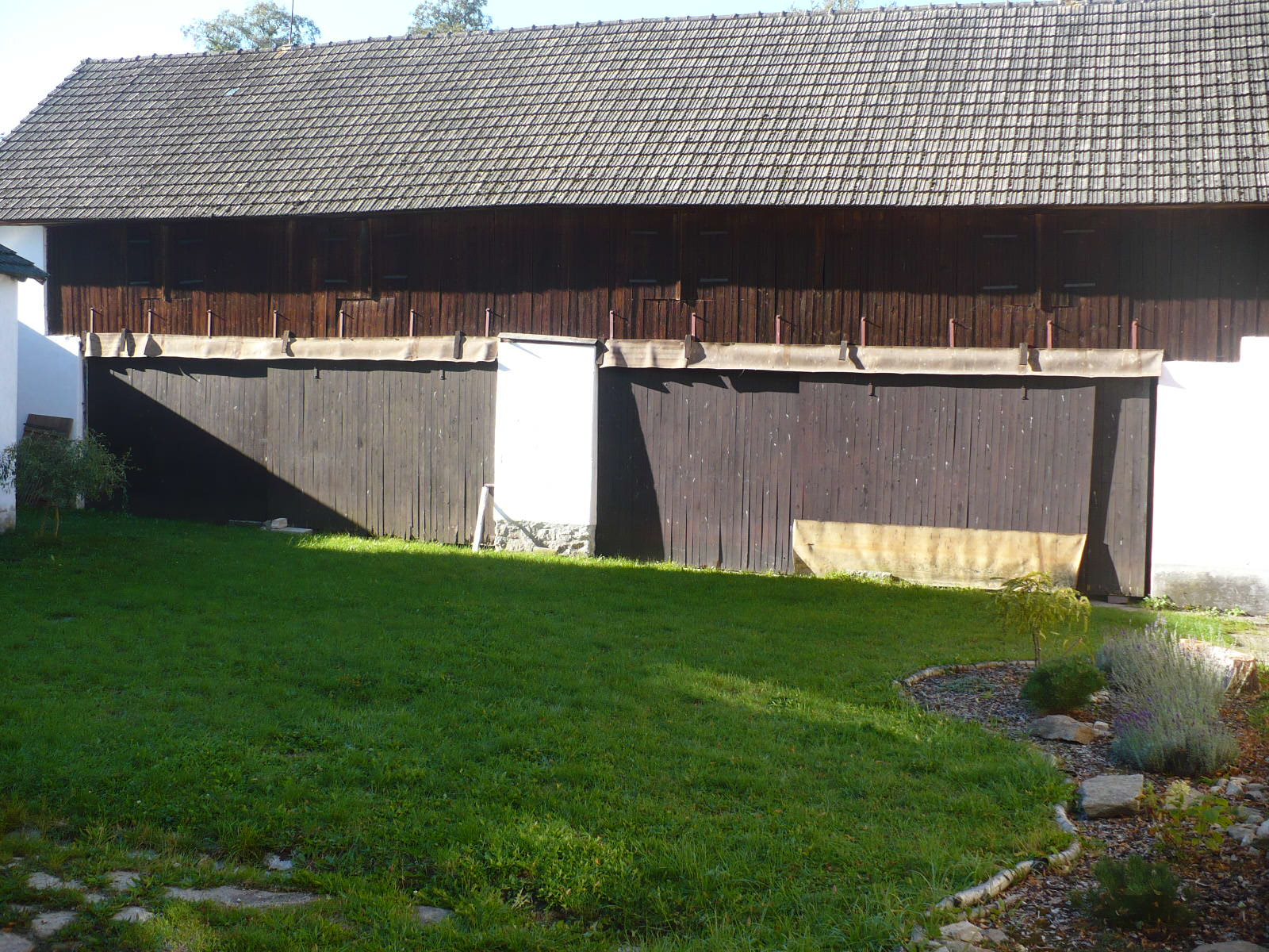SVATEBNÍ STODOLA. Pro hostinu jsem vyhradila část stodoly, která přímo navazuje na uzavřený dvůr. Stodola je opatřena posuvnými vraty, které se mohou do poloviny odsunout a vnitřní prostor propojit s dvorem. Slavit se tedy může jak pod střechou, tak pod širým nebem. Dvůr je z velké části zatravněn, takže děti se zde mohou zabavit různými hrami bez obav, že by dospělým zmizely z dohledu. Statek je ideální pro středně velké svatby do 50 hostů. Zároveň mohu nabídnout ubytování pro 10 svatebčanů.