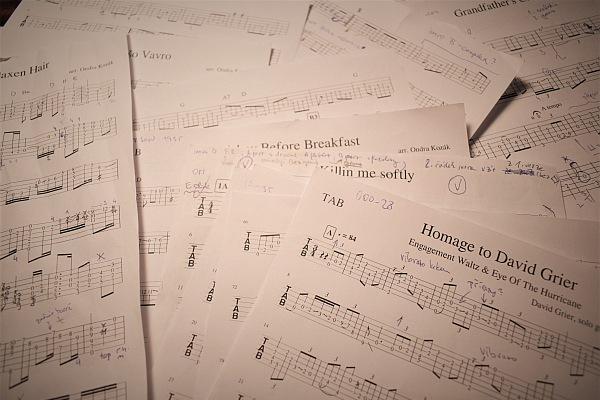 Při aranžování zejména převzatých věcí jsem zažíval pro mě úžasná dobrodružství, kdy jsem hledal způsob, jak zahrát často nekytarovou věc sólově trsátkem na kytaru. O to se teď můžu podělit, protože všechny aranže jsem zapsal a součástí projektu bude i sešit s tabulaturami. Cvičení, nahrávání a postprodukce této desky je také něco jiného, než na co jsem zvyklý z práce v kapelách. Každý tón na desce jsem si musel vybojovat, za nikoho se tu neschovám.
