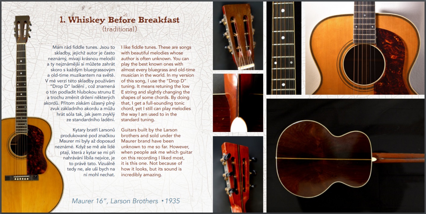 Další ukázka z desky – Grandfather's Clock je skladba z roku 1876 a svou verzi, kde kombinuju několik různých technik (Travis picking, crosspicking, left hand tapping) jsem natočil na tuhle podivuhodnou kytaru z roku 1926. Vzhledem k zvláštním rozměrům nástroje to byla docela dřina, ale tenhle zvuk jsem prostě na desce mít musel.
