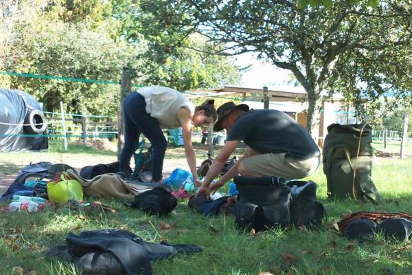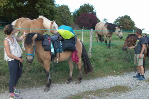 Sedlo se nám poprvé pod náporem nepřesně vyvážených brašen otočilo už v zatáčce u Vltavy- ani ne 500 metrů daleko a pak začaly hodiny fyziky v praxi. Museli jsme se naučit jak přesně sedla vyvážit a fakt, že máme koně s kulatými zády bez kohoutku a jedno sedlo bezkostrové, nám práci jen ztěžoval. Teorii jsme sice znali, ale některé věci si člověk musí prožít. Nejprve jsme si nechávali hodně věcí (např. vodítka, lonžky, madla, ale i lahve s vodou) zavěšených na bocích a vyvažovali jimi stranu, která stoupala vzhůru. Náklad se houpal a leckdy nebezpečně nakláněl. Pokud spadl, často jsme obviňovali jeden druhého, že si nevšiml otáčejícího se sedla včas. Časem jsme se ale naučili nejen vyrovnávat sedla správně, abychom je celou cestu nemuseli převazovat, ale i přestat obviňovat se navzájem a začali jsme spolupracovat. Cesta však byla dlouhá a čekalo nás mnoho překážek.
