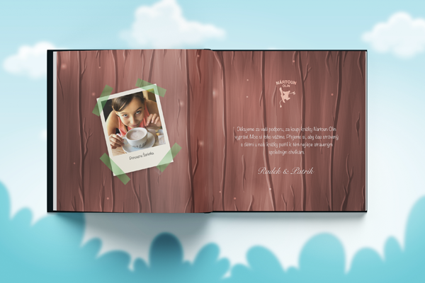 Další z produktů, které budeme nabízet, je plecháček se jménem dítěte a s postavou z knihy podle výběru rodiče nebo dítěte. Rádi bychom, aby redaktora Nártouna měly děti pořád na očích a stále je doprovázela myšlenka, chci také něco napsat nebo namalovat.