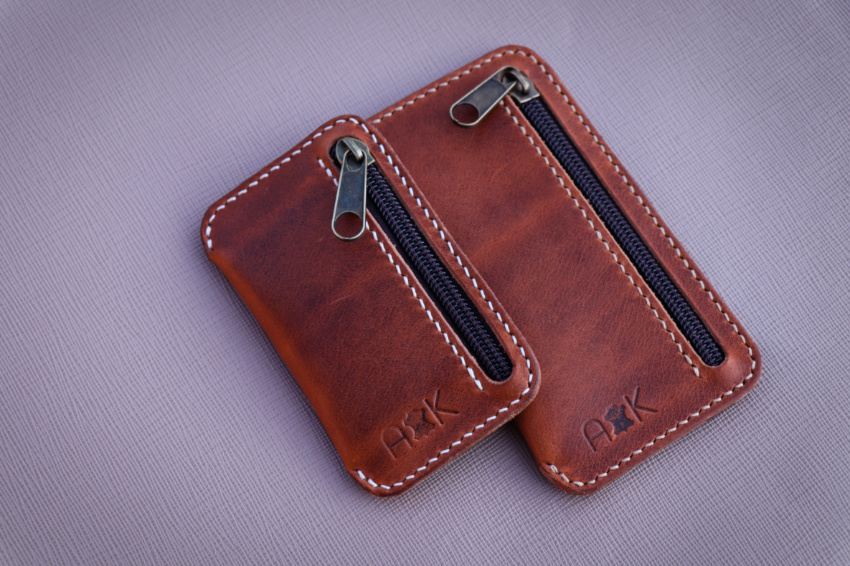 Mini peněženka na mince a větší peněženka na bankovky a karty.