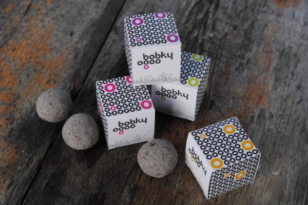 Jedná se o směs hlíny, jílu a dalších přísad se semínky kvetoucích letniček a bylinek, vymodelovaných do tvaru malé kuličky. Těmto kuličkám neustále vymýšlíme nové domečky z papíru nebo dřeva. Vzniká tak produkt, jehož úlohou je dělat radost a potěšit. BOBKY Vás budou bavit už při výběru odměny. A zážitkem bude také probouzení semínek. Při dostatku vody, slunce a lásky Vás BOBKY obdarují voňavými rostlinkami, které jste vypěstovali Vy sami.