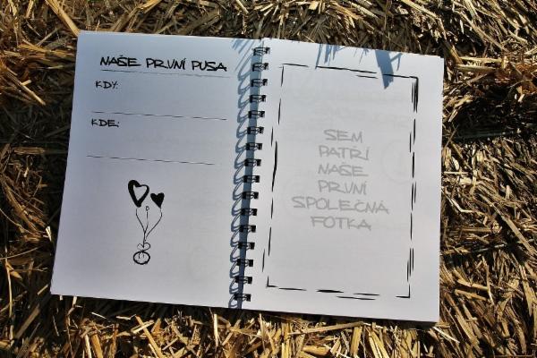 Na téměř sedmdesáti stránkách najdete spoustu místa pro Vaše společné fotografie, místa věnovaná Vašim společným plánům do budoucna a spoustu místa na vzpomínání a zaznamenávání Vašich prvních společných aktivit, oblíbených míst, oblíbených písní, filmů, Vašeho prvního setkání a ještě mnohem víc.