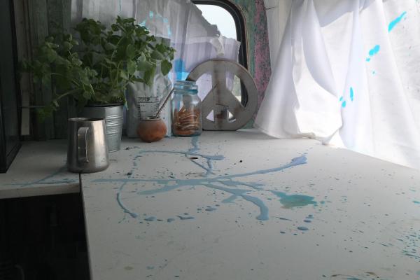 Není ale divu, byl to náš sen, dali jsme do něj všechnu naši lásku, a díky tvrdé práci a odhodlání jsme ze starého shnilého přívěsu udělali vlastníma rukama fungující Bar in da Kar, který rozdává samou radost. Přesto jsme byli někomu trnem v oku. I na tak skvělém a klidném místě jako je Pálava se najde závist a nenávist. V úterý 27.8. ráno jsme došli do KarBaru a nevěřili vlastním očím. Dveře pootevřené, zaprášené bílým povlakem. Nahlídli jsme dovnitř a zhrozili se. Nejen, že byl KarBárek kompletně vybílen, zmizely kromě drahých věcí, jako jsou kávovar, nový freshový mlýnek, baristické vybavení, gril a další spotřebiče i věci, které neměly hodnotu, ale byly potřebné pro provoz podniku - deserty z vitríny, staré příbory, bedny s kořením, potraviny... Zloději lup nestačil, měl potřebu se pořádně vyřádit. Vystříkal celý bar modrým sirupem Curacao, práškovým hasičákem a dozdobil naklíčenými semínky, které většinou zdobí spíš naše dobroty.
