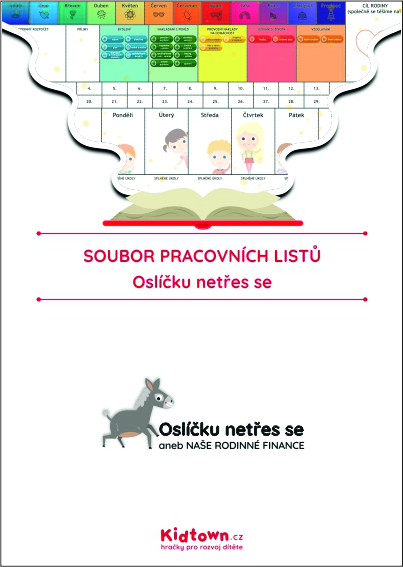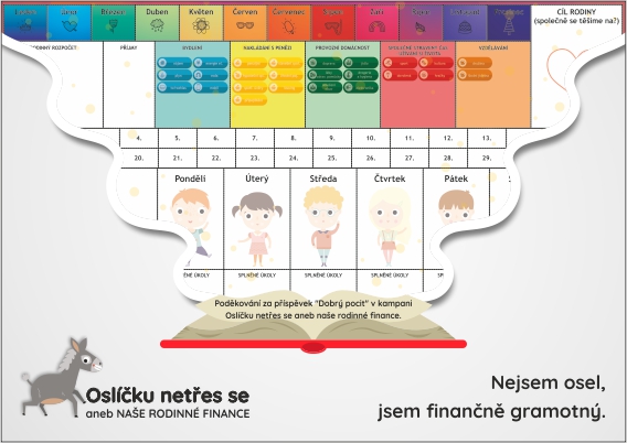 Název Oslíčku netřes se, aneb naše rodinné finance vznikl až během příprav tabule. Nám přišel vtipný a trefný. Pokud je totiž člověk finančně gramotný a má své peníze pevně pod kontrolou, tak vůbec nepotřebuje oslíčka, ze kterého při každém otřesení budou padat zlaťáky.