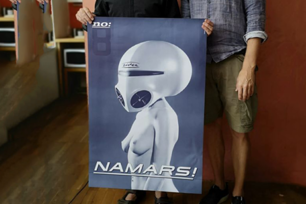 Sítotiskový plakát od grafiků Marka Pistory a Petra Krejzka z roku 1998. Fotografie Adam Holý