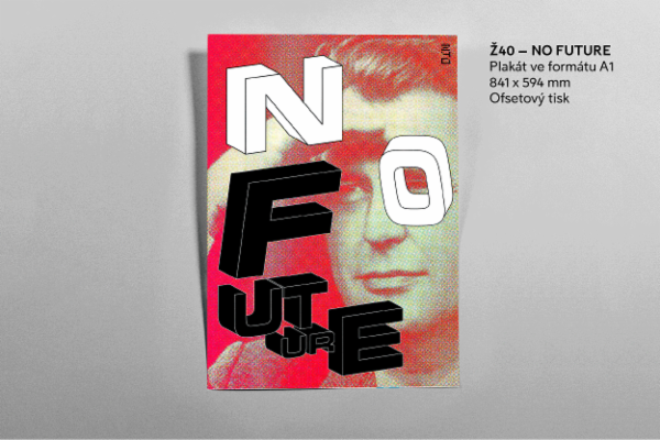 Plakát NO Future ve formátu A1 (841 x 594 mm) s "kormidelníkem Zemanem" vyhlížejícím marně budoucnost.