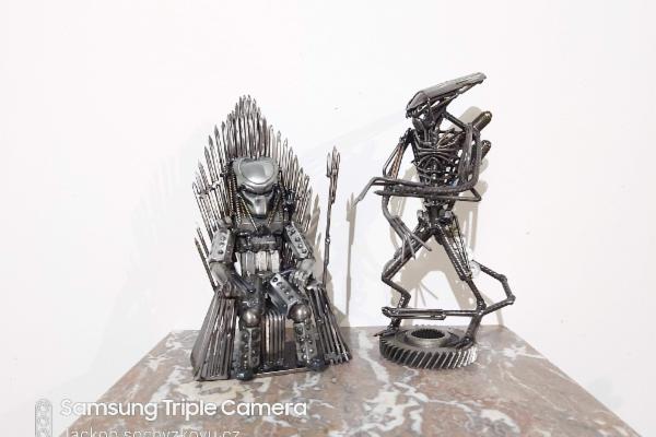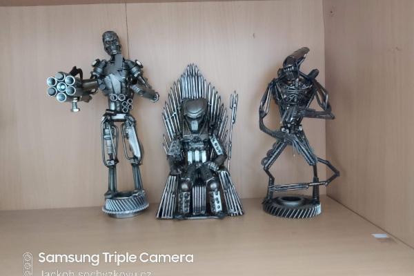 Jsem umělec, který tvoří sochy z kovu. Každá ze sošek je originálně a ručně vyrobená z recyklovaných součástek v dílně českého umělce Jackobsochyzkovu.