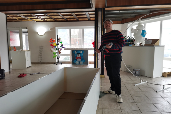 Tom si splnil sen a v prodejně máme místo i na zřízení malé dílny se skladem pro naši výrobu balónkových soch, fotokoutků, sloupů, zkrátka všeho co si umane a ten den umotá.