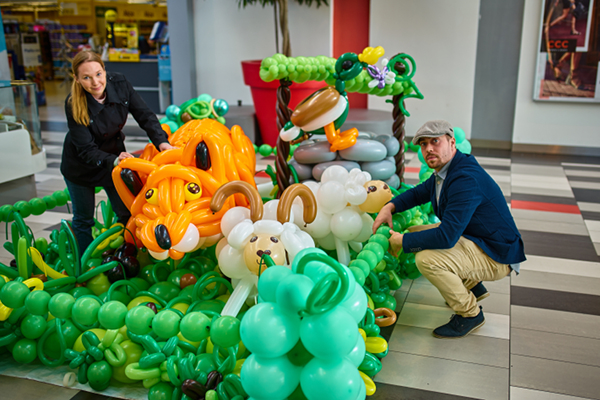 Před dobou koronaviru jsme chtěli najít uplatnění s novou generací balónkových výstav v obchodních centrech a to se nám i podařilo. Obrovská Valentýnská výzdoba v Galerii Butovice byl velký hit, přišla se s ní vyfotit i naše první česká barbie Gabriel Jiráčková, ozdobená svoji kabelkou podle nejnovější módy - latexová, ze třpytivých balonků.