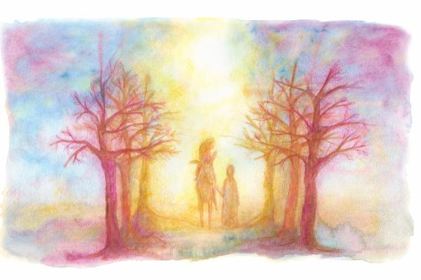 Zatímco naši poutníci spali schoulení v malé skalní komůrce, v nejbližší osadě kousek odsud se v ten stejný noční čas děly zvláštní věci… Jedna z žen, jménem Magdalena, měla ve zvyku procházet se nocí. Sytil ji klid a ticho všude kolem. Rozmlouvala v těch chvílích se svou duší. Kráčela pomalu ztemnělou krajinou. Pozorovala ztichlé domy, kde odpočívali lidé, a chlévy, kde podřimovala zvířata… Té noci ji zaujala obloha, celá zahalená do dešťových mračen. Tak nějak záhadně, až trochu děsivě dnes působila nebeská klenba. Magdalena v sobě pocítila velkou úctu. „Smíme být součástí příběhu Země a Vesmíru…” pomyslela na lidský rod. V tu chvíli ji zaplavil nesmírný vděk...