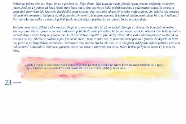 Barbora: Tak jako čokoládička v adventním kalendáři zpříjemňuje čekání na Ježíška, je i příběh PUTOVÁNÍ mlsáním. Ovšem pro duši. Každý den poodkryje kousek cesty Josefa a Marie do Betléma. Je krásné s nimi ve vánočním čase putovat za Světlem.