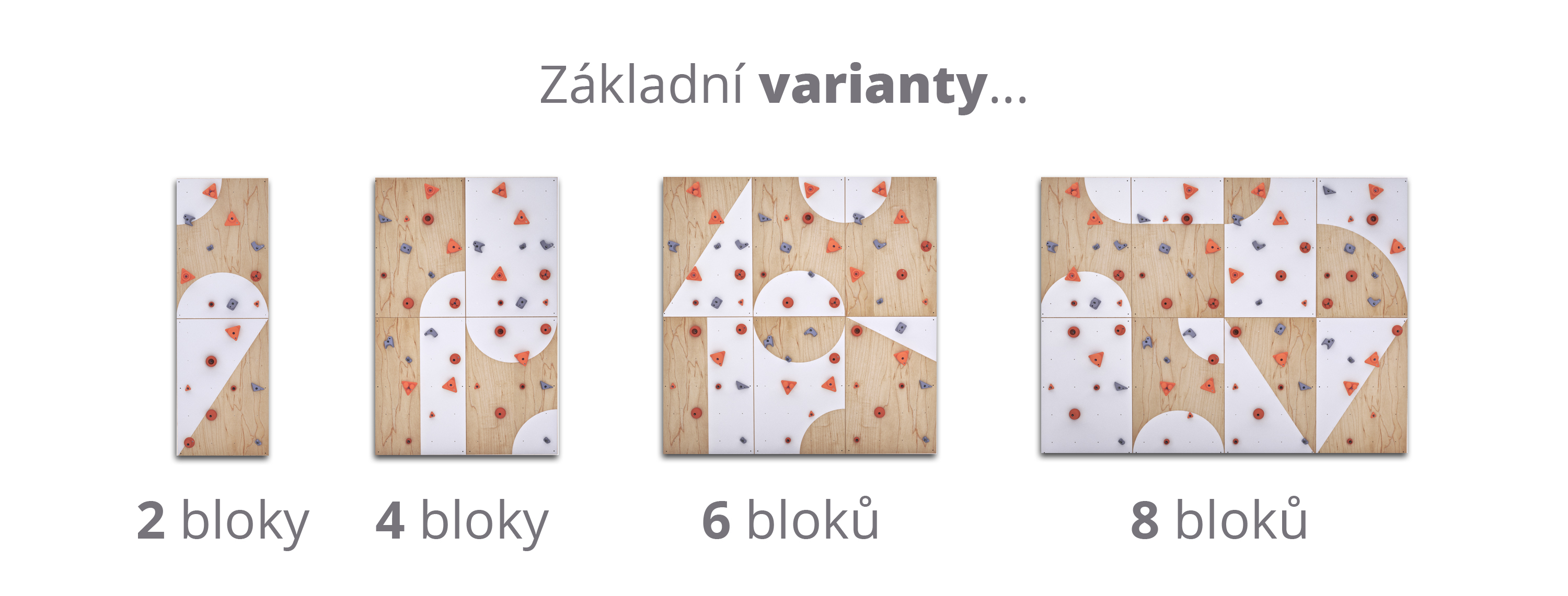 V tomto případě vám dodáme BLOCKids z voděodolného materiálu a lezecké chyty ve variantě "UV odolné". To znamená, že barvy chytů venku na slunci budou parádní třeba i za rok!