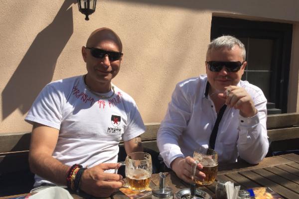 Ve druhém voze sedím já a Daniel Landa v kostýmu kouzelníka Žita, tedy v kožené motorkářské bundě s runou přes celá záda.