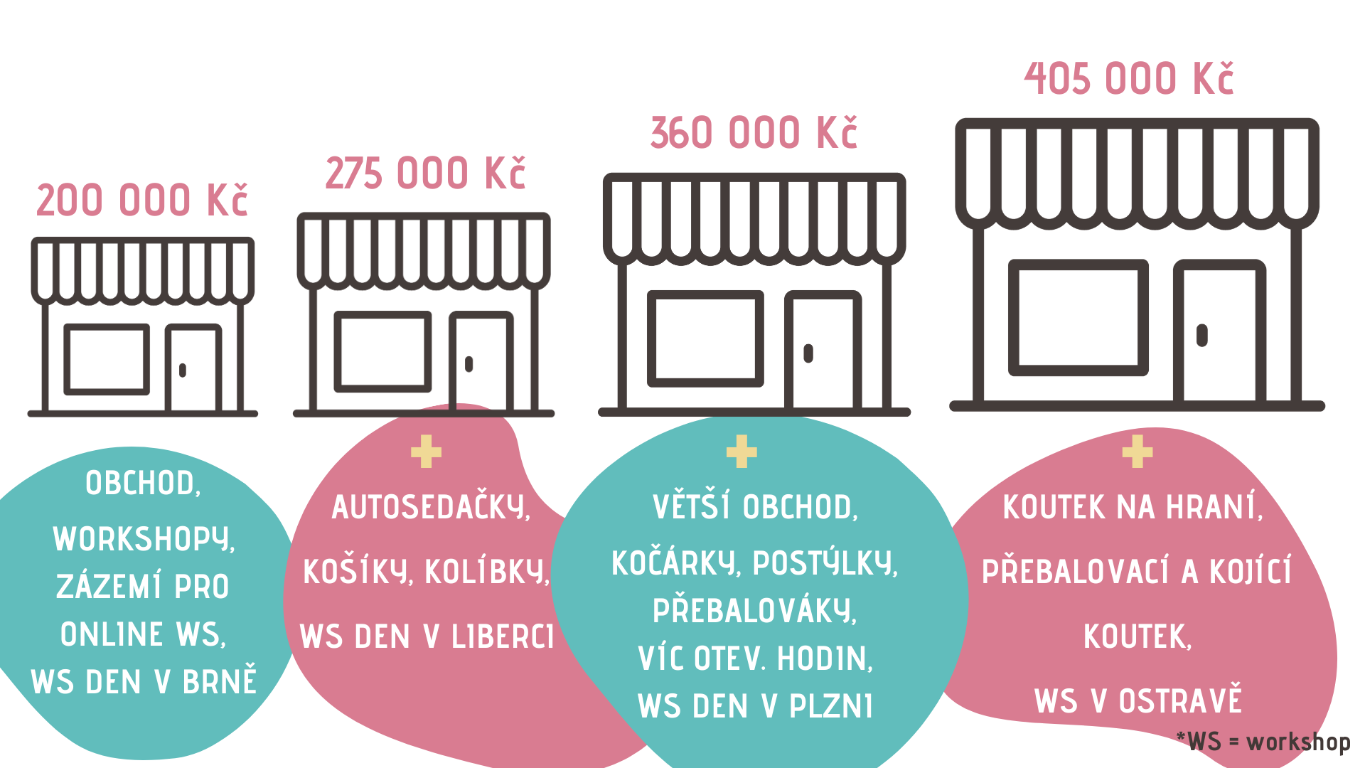 Nakoupíme víc objemnějších produktů, které budou potřebovat prostornější výdejnu – kočárky, postýlky, přebalováky, atd.