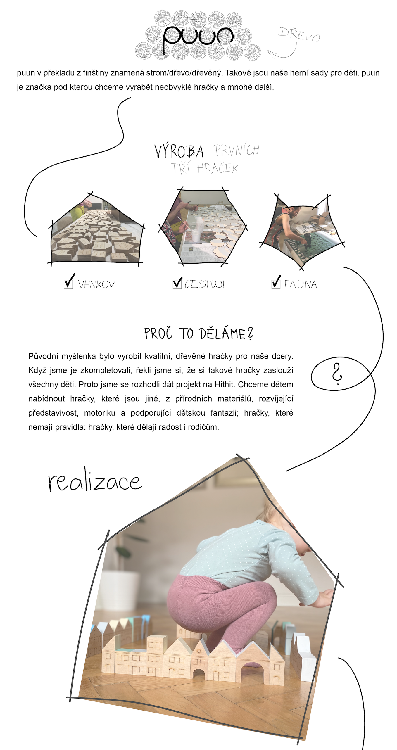 Puun jsou dřevěné, ručně vyráběné hračky, rozvíjející představivost, motoriku a podporující dětskou fantazii. Hračky, které dělají radost dětem i rodičům a když se o ně budete starat, budou se dědit po generace.