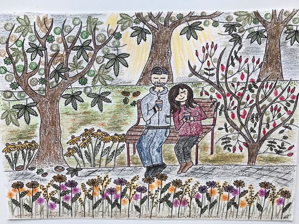 ↑ Dárek od naší zákaznice - já s přítelkyní v podzimním dni s kávou.