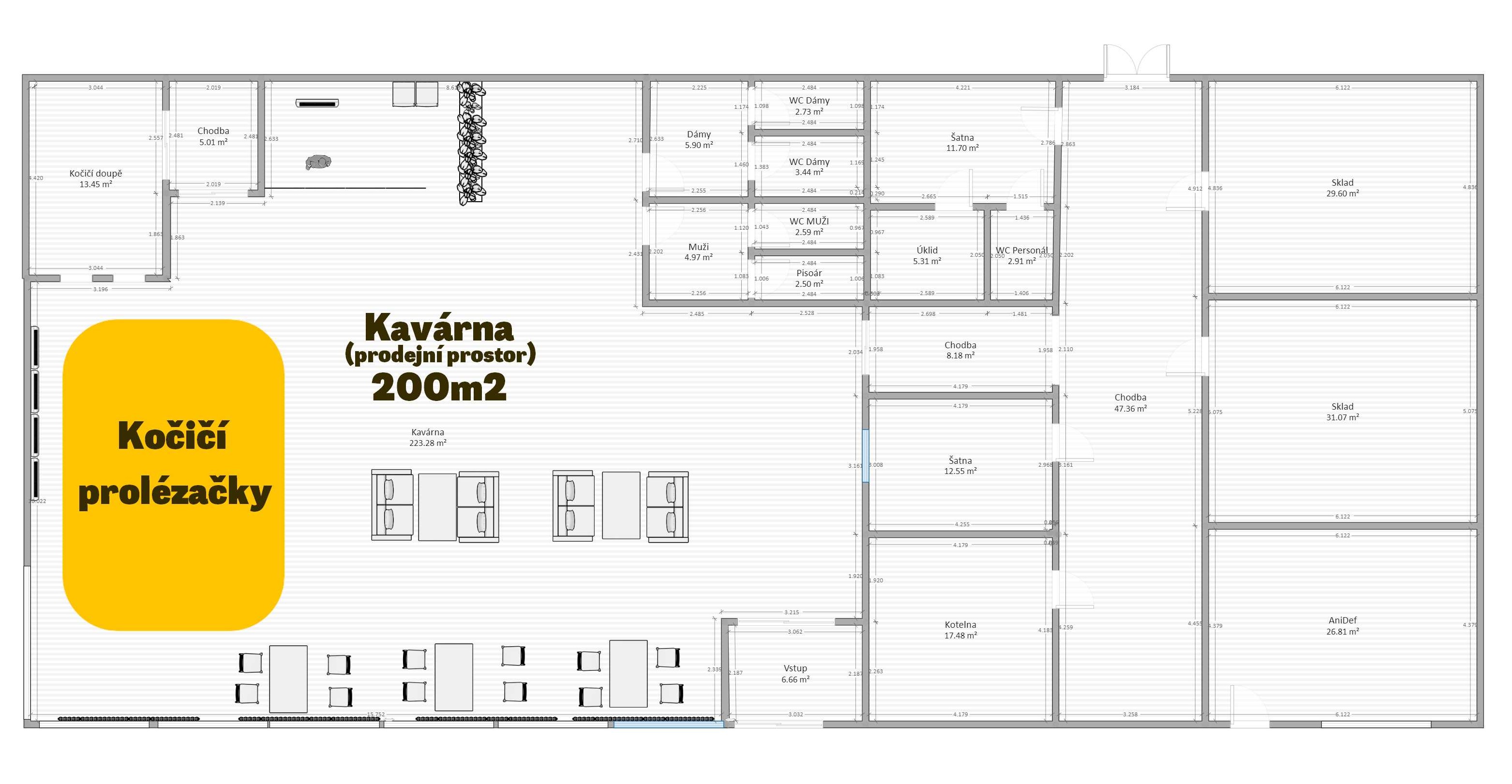 Prostory je nutné kompletně zrekonstruovat. Je nutné udělat kompletní rozvody vody a elektřiny, přidělat toalety pro veřejnost a vybudovat celé prostory kavárny, včetně zázemí pro kočičky a skladu. V současné době jsou prosory vlastně jen holé zdi, kde je pouze studená voda. Věříme však, že se nám, díky Vám, náš projekt uskuteční realizovat a nabídneme tak společně šanci kočičkám bez domova ♥