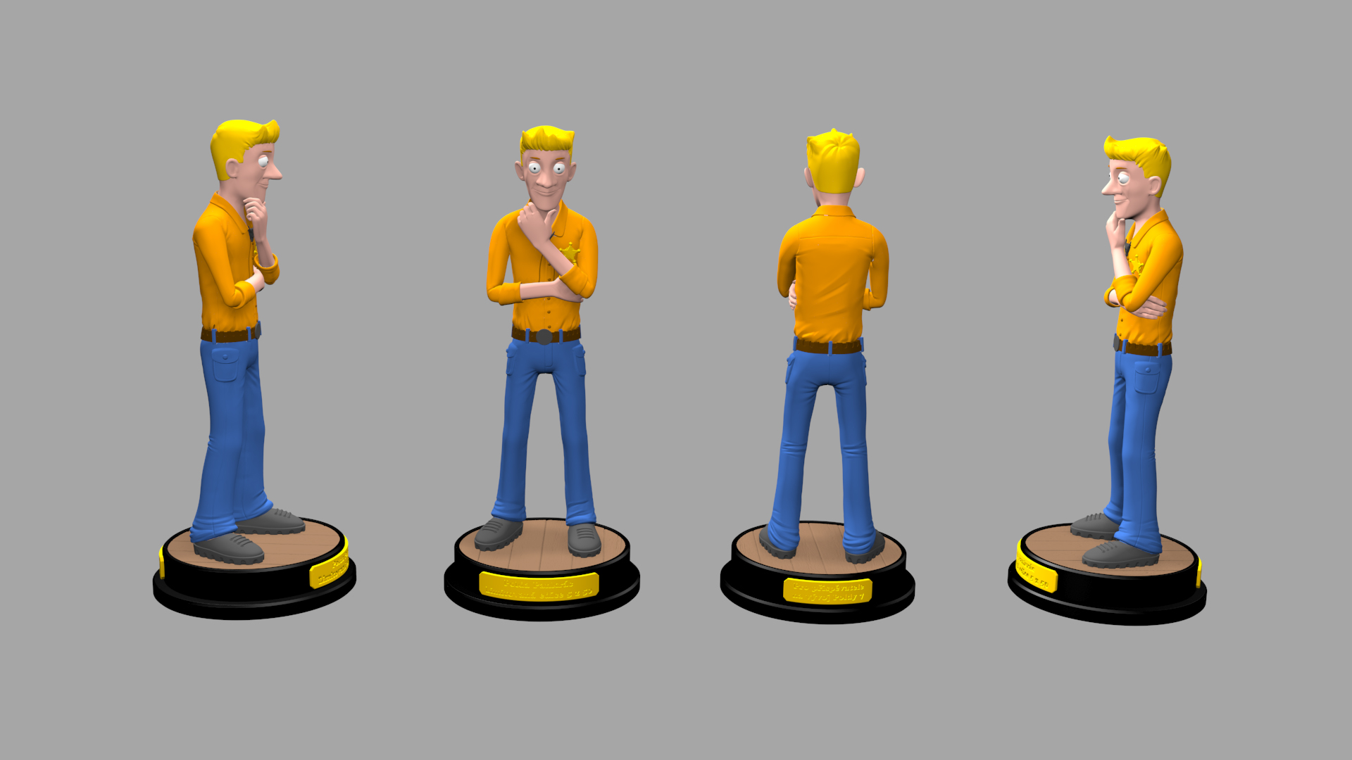 Tak se nám podařilo dokončit sošku poldy Pankráce do finální podoby. Zde se můžete podívat, jak bude soška vypadat v barvě.