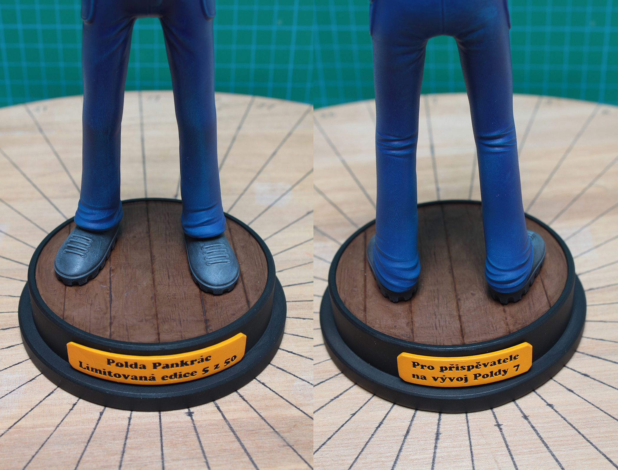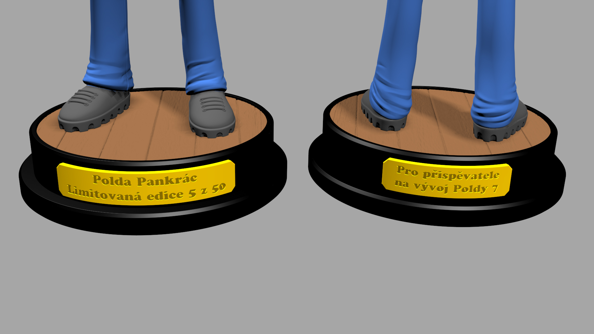 Soška, kterou od nás dostanete v rámci kampaně, bude vyrobena v limitované edici podle počtu přispěvatelů, nepřesáhne však 50 kusů. Tzn. na sošce bude nakonec nápis třeba "5 z 12". Podle počtu přispěvatelů. Na každé sošce bude unikátní číslo této sošky a zezadu také text, že se jedná o sošku pro přispěvatele na vývoj Poldy 7. Získáte tak opravdu unikátní sošku, kterou jinde již nekoupíte.