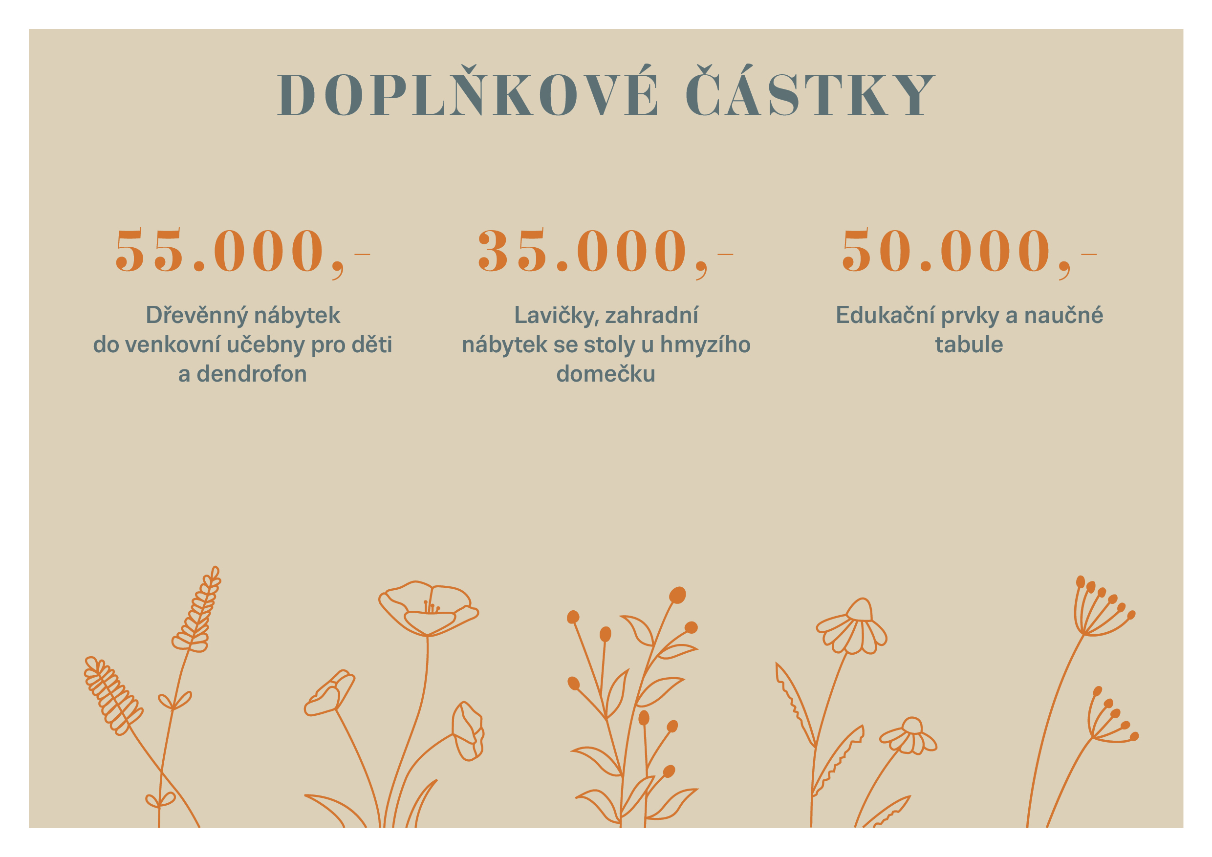 V případě, že se nám podaří vybrat více, než je cílová částka, velmi rádi obohatíme naši zahradu o tyto prvky: