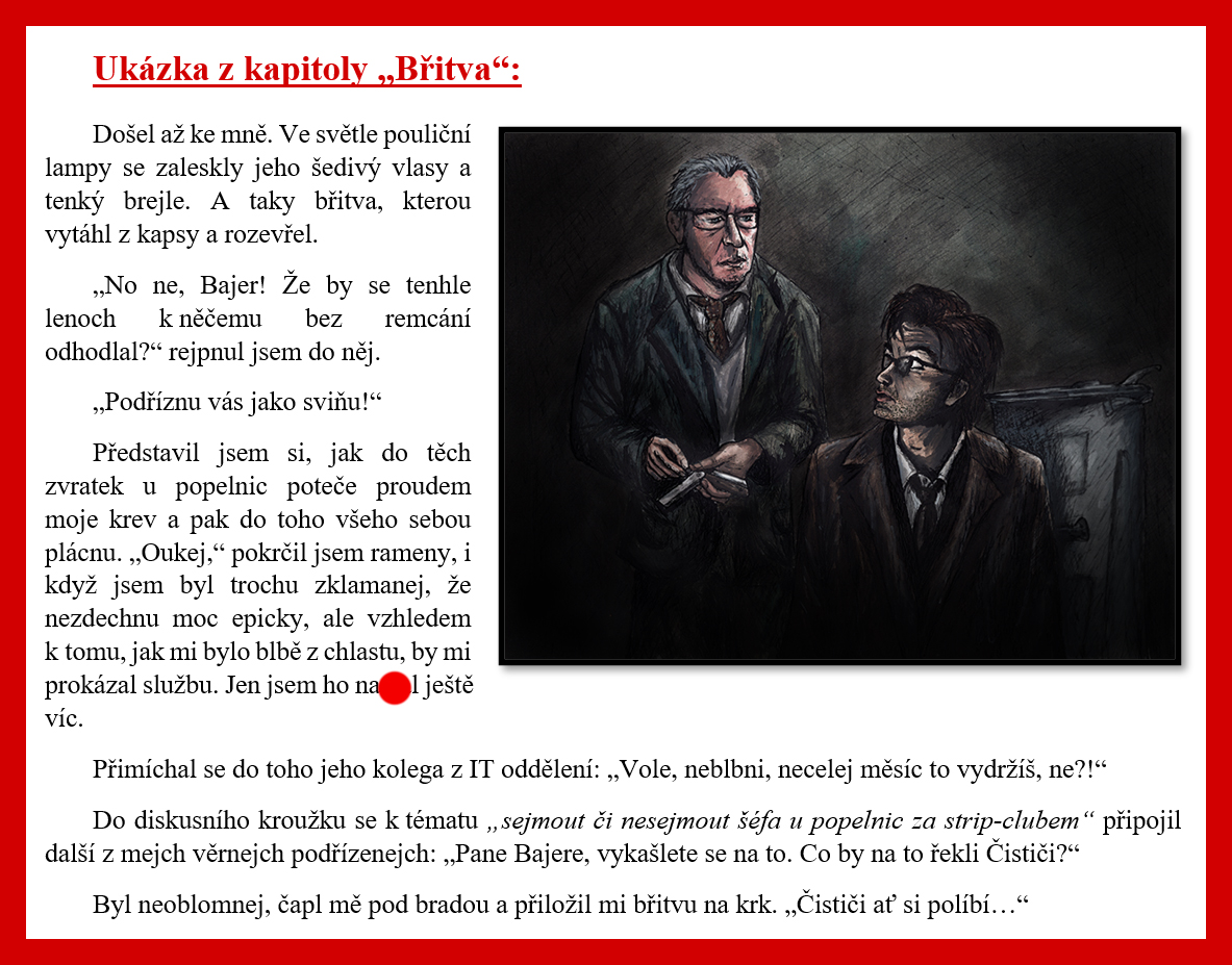 Nedílnou součástí jsou barevné ilustrace (ty jsem také dělala já), které tomu všemu dávají trochu komiksový nádech. Takže jestli se nebojíte občasných drasťáren a neberete svět tak vážně, pak jsou Bedny právě pro vás.