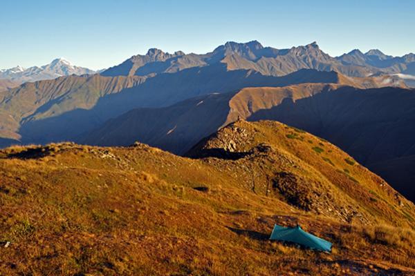 UKÁZKA 1, Gruzie - hory Gudamakari. Scházím z hřebene, protože se mi pádem ze srázu rozbil fotoaparát. Mířím k silnici v údolí, abych odtud dostopovala do Tbilisi a koupila si v bazaru jiný...