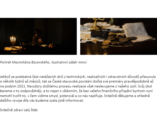 Čtyřdílní dokumentární cyklus mapující stavovskou vzpouru z let 1618–1620, její příčiny a důsledky (4e*26min). Podpořte náš projekt a pomozte tak vytvořit dílo, které se vší poctivostí zpracovává významný mezník české historie - České stavovské povstání.