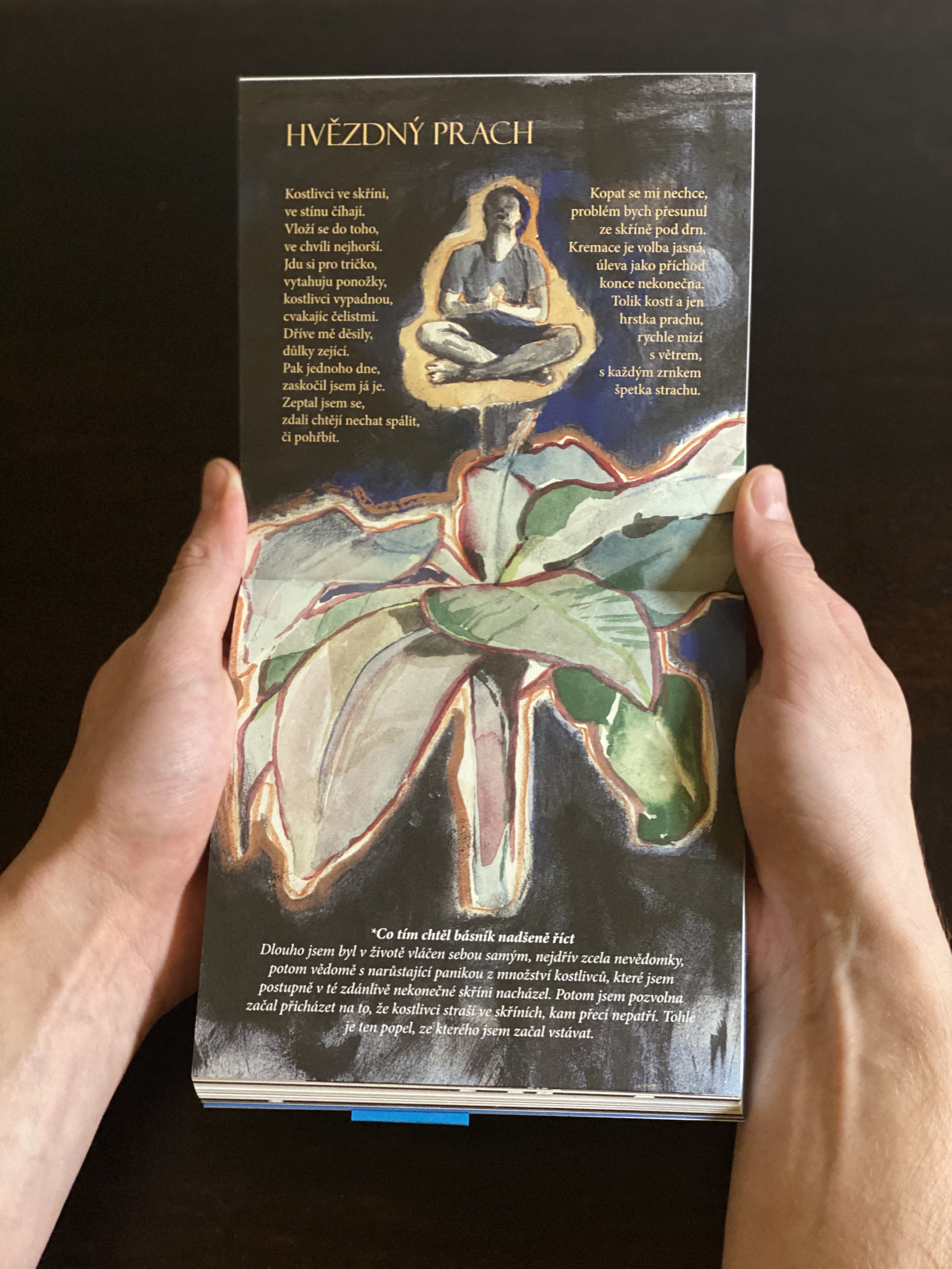 Sbírka začala vznikat během mého studia ve Švýcarsku jako důvod pro tvoření v češtině. Ze stesku po rodném jazyce a jeho libozvučnosti se stal terapeutický proces sdílení a postupně se z toho stávala kniha, se kterou se můžou i díky vám pokochat ostatní. Dílo je tištěné na Munken papír v Letenském studiu Voala, které, jak jejich motto napovídá, učí vnímat papír.