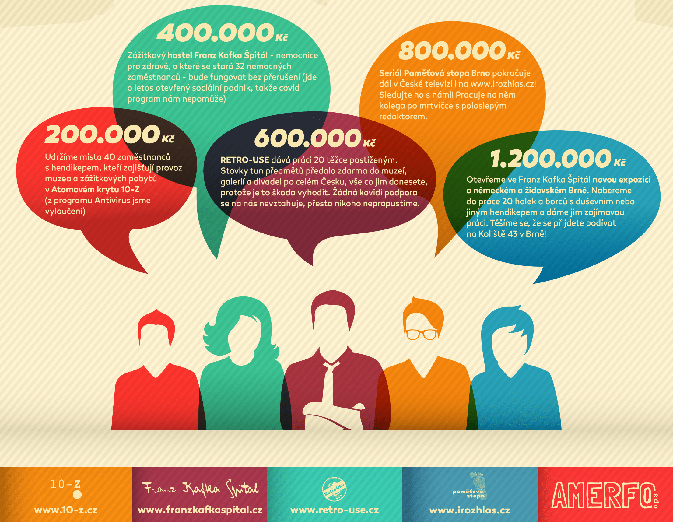Když se nám povede vybrat 1 200 000 Kč, budeme nejšťastnější! Protože kromě toho, že zachráníme všechny naše projekty a udržíme práci všem našim zaměstnancům, vytvoříme i nová pracovní místa tím, že ve Franz Kafka Špitále vybudujeme novou expozici o židovském a německém Brně!